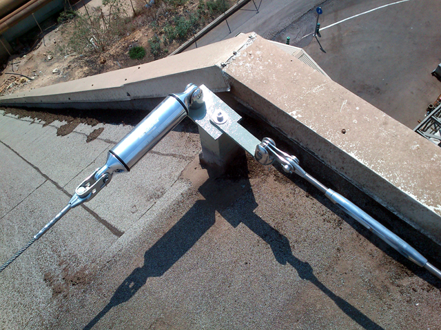 Existía una línea de anclaje que no cumplia los estandares de seguridad de la normativa EN795 y por tanto no era posible realizar labores de mantenimiento.