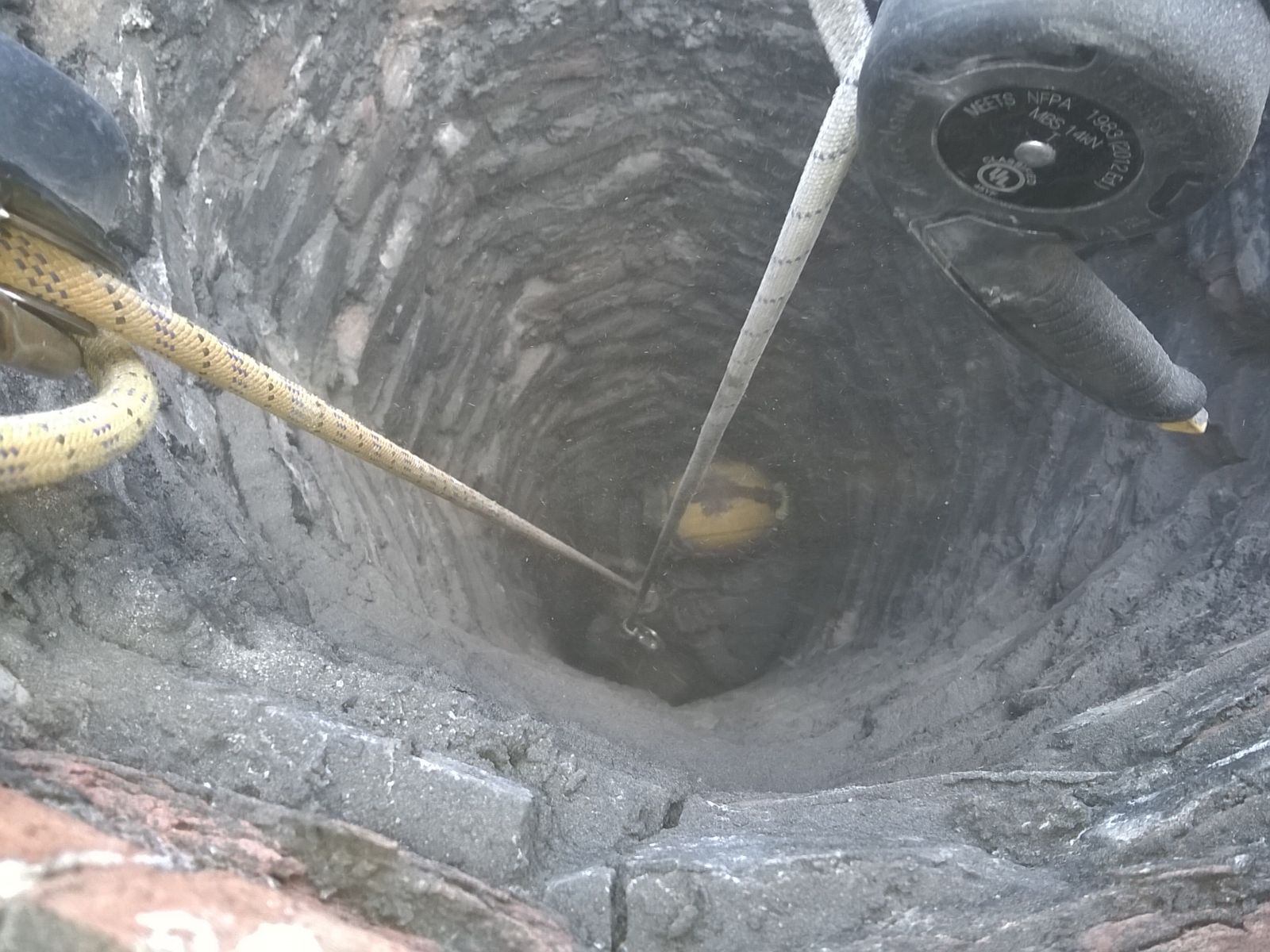 - 1ª Fase: Limpieza del interior de la chimenea con agua a presión.