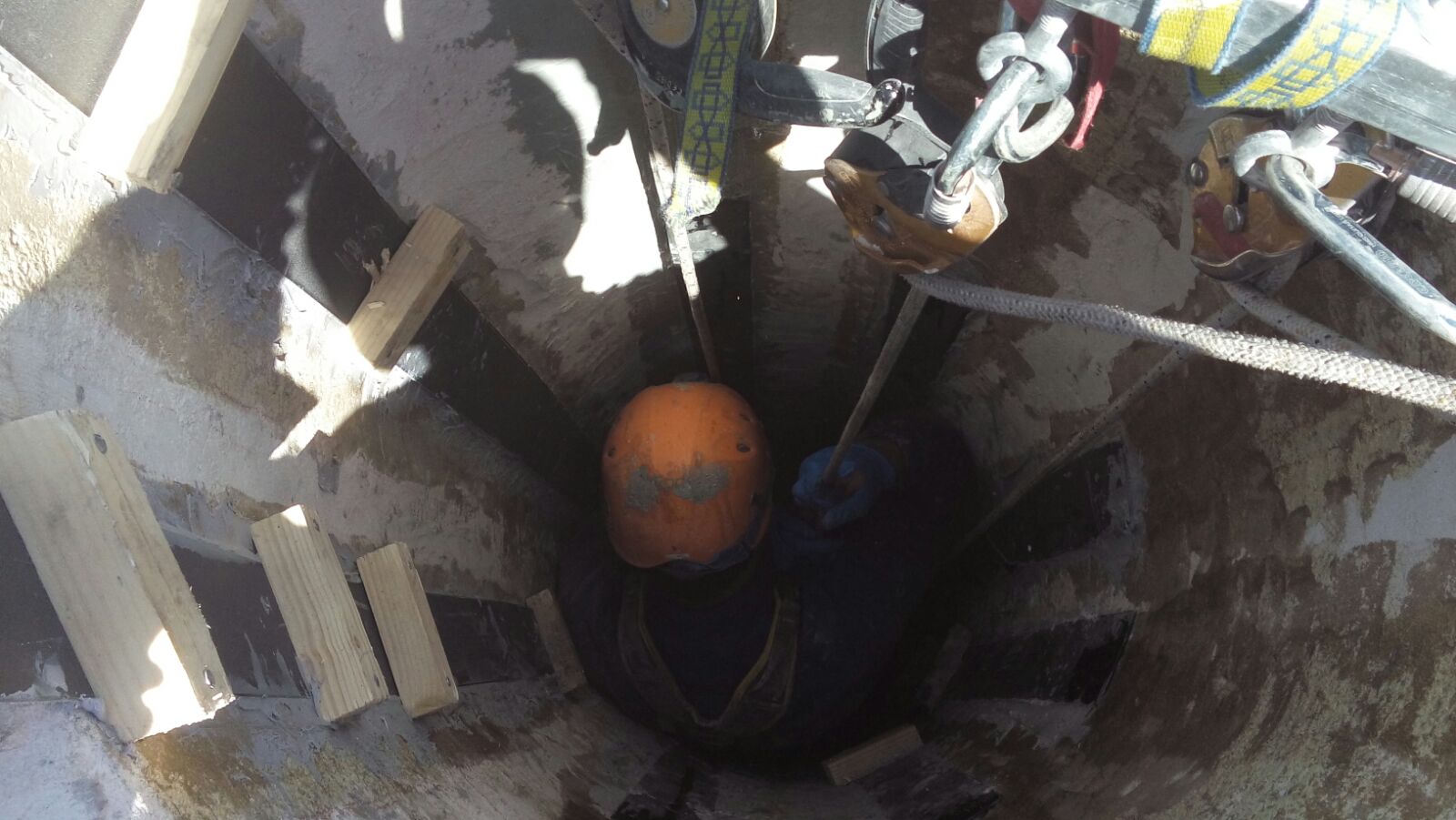 Restauración y refuerzo chimenea industrial histórica de ladrillo en Agost