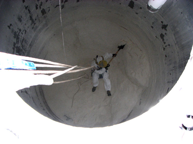 Intervención en espacio confinado de depósito de fábrica de helados.