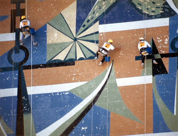 Desprendimiento de las piezas del mosaico y pérdida del color del mural