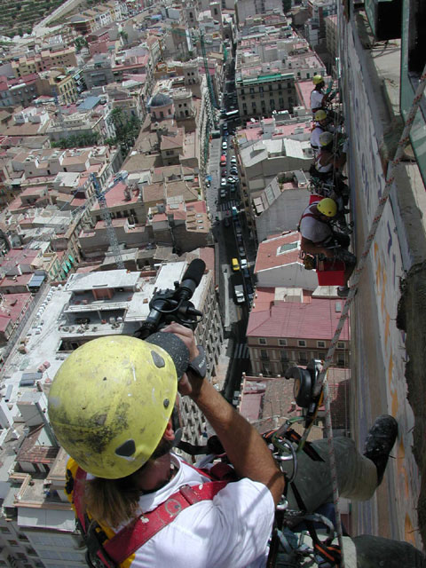 - 1ª Fase: Saneado y reparación de grietas en fachada del mural del gran sol.