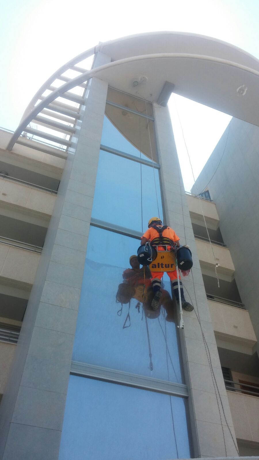 Con el sistema de trabajos verticales, logramos acceder a las cristaleras de la fachada y realizar el trabajo por un coste asumible por los propietarios.