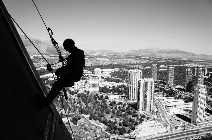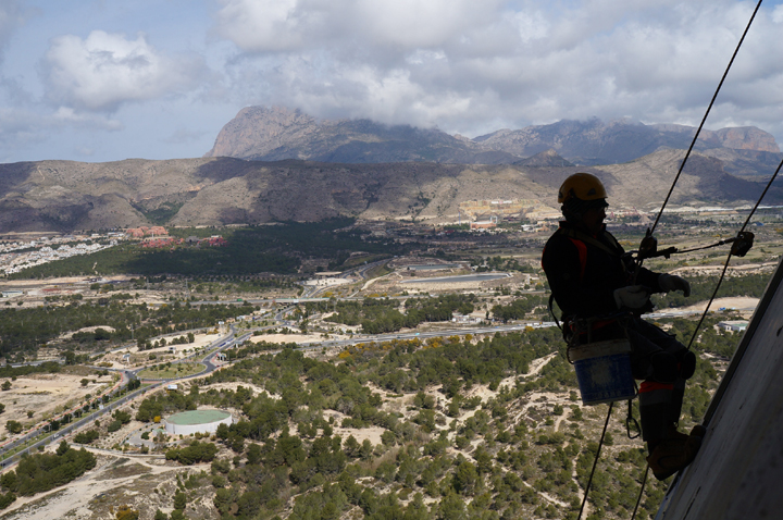 Con el sistema de trabajos verticales se pudo intervenir los sitios de muy dificil acceso para medios convencionales abaratando costes y plazos de ejecución.