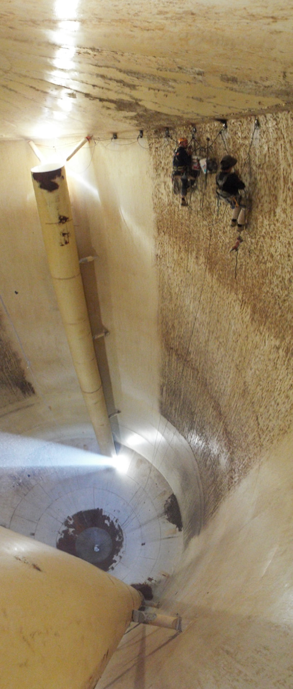 Corrosión de la superficie interior de las paredes del silo con alta dificultad de acceso para su tratamiento.